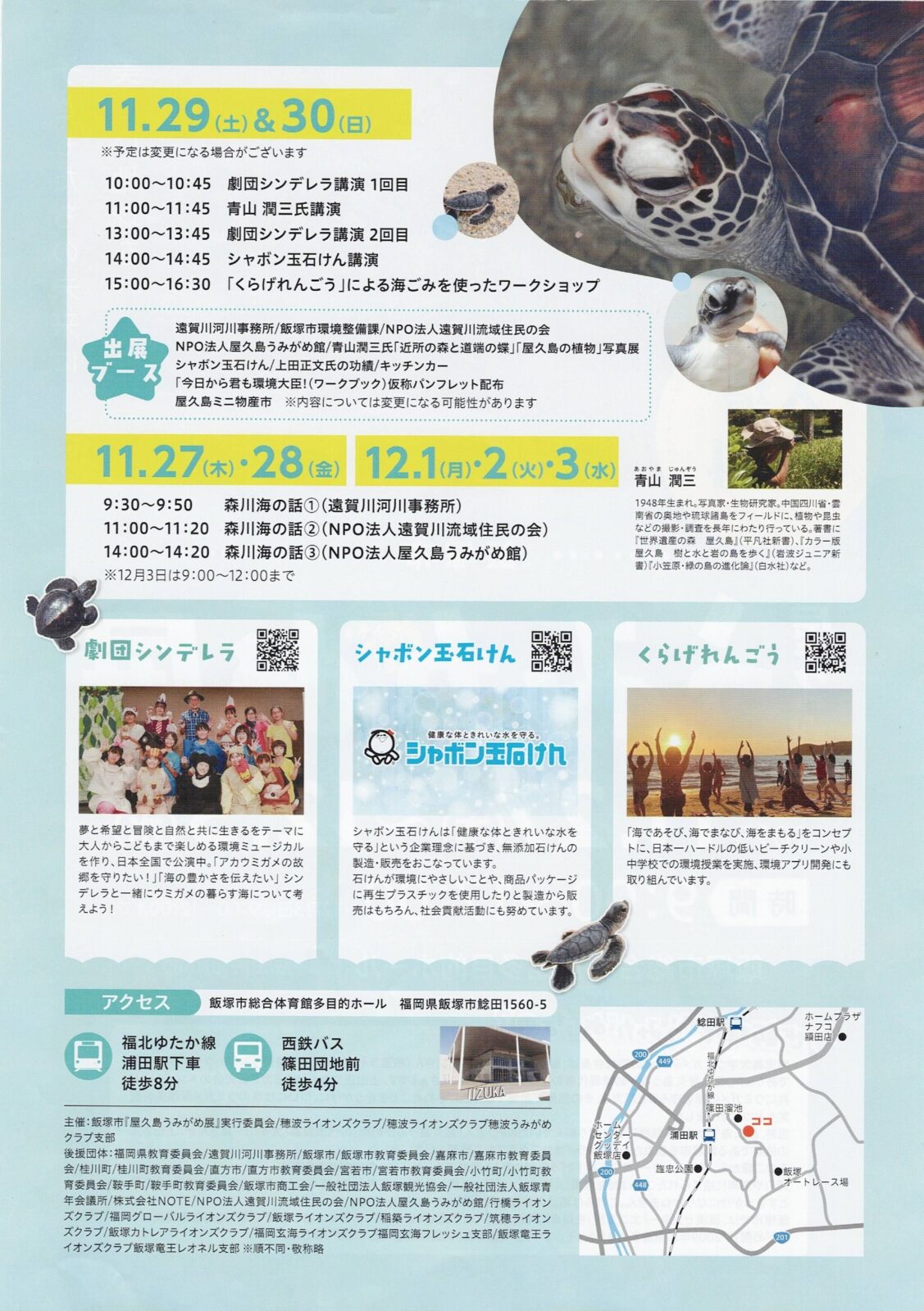 主催:飯塚市『屋久島うみがめ展』実行委員会/穂波ライオンズクラブ/穂波ライオンズクラプ穂波うみがめクラブ支部
