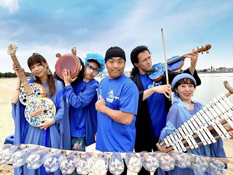 海ごみからつくった楽器で演奏を行うアーティスト「ゴミンゾク」によるわくわくライブステージを行います!(10月26日)