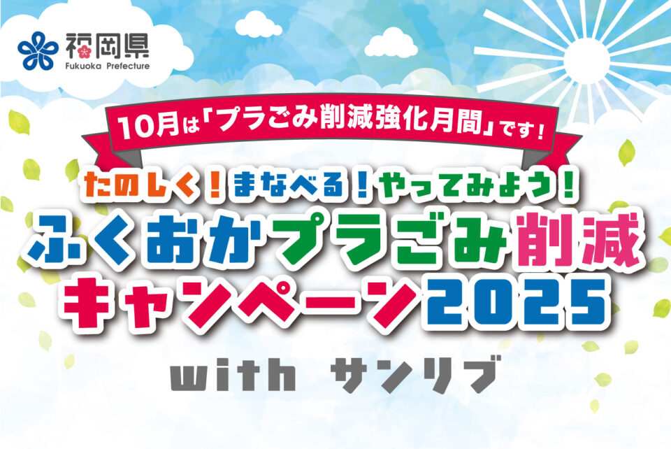 福岡県では、毎年10月に「ふくおかプラごみ削減キャンペーン」を実施しています。今年も本キャンペーンの特別企画としてサンリブと連携し、サンリブシティ小倉でイベントを実施します!